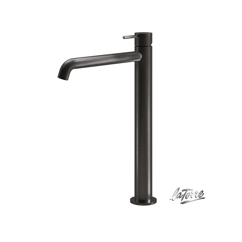 Μπαταρία νιπτήρος θερμομικτική ELLE INOX 316 PVD BLACK BRUSHED, υψηλή για επιτραπέζιους νιπτήρες με βαλβίδα clic-clac, LA TORRE Ιταλίας