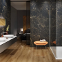 NIGHT LUX - Mεγάλου μεγέθους σε διαστάσεις 60X120, τύπου πέτρας-μαρμάρου με ματ μαύρο χρώμα και χρυσές γραμμές. Μπορεί να χρησιμοποιηθεί τόσο στο δάπεδο όσο και στους τοίχους του μπάνιου ή της κουζίνας. Πλακάκι Rectificado, δηλαδή η τοποθέτησή του να μπορεί να γίνει και χωρίς σχεδόν καθόλου αρμούς αν εσείς το θελήσετε.