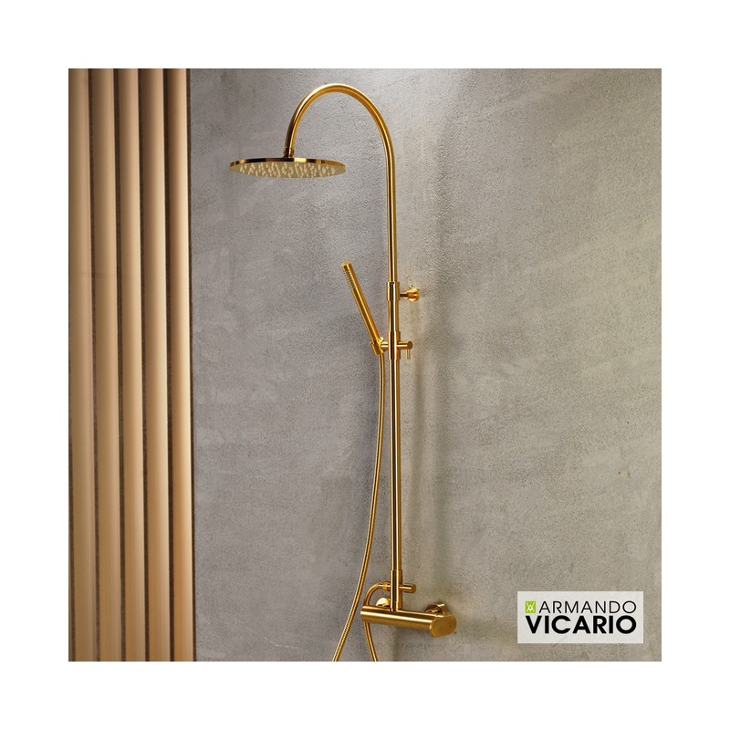 Μπαταρία ντουζιέρας θερμομικτική SLIM 2 εξόδων με κολώνα Φ20/24mm ρυθμιζόμενου ύψους 94-122 cm, ανακλινόμενη κεφαλή Φ25 cm & τηλέφωνο Anticalcare με άθραυστο σπιράλ 1.5m, VICARIO Ιταλίας