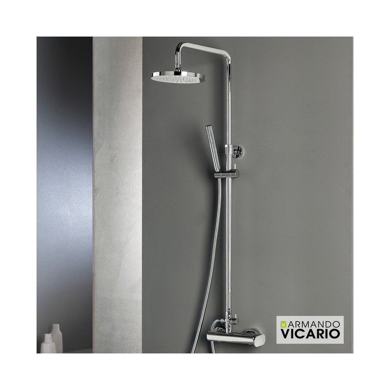 Μπαταρία ντουζιέρας θερμομικτική SLIM 2 εξόδων με κολώνα Φ20/25 mm ρυθμιζόμενου ύψους 83-144 cm, ανακλινόμενη κεφαλή Φ20 cm & τηλέφωνο Anticalcare με άθραυστο σπιράλ 1.5m, VICARIO Ιταλίας