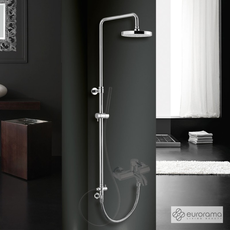 Κολώνα για σύνδεση με μπαταρία λουτρού. Ρυθμιζόμενο ύψος 83-144 εκ. με ανακλινόμενη κεφαλή anticalcare Φ20 εκ., εκτροπέα, στήριγμα τηλεφώνου & άθραυστο σπιράλ 60 εκ., Eurorama Ιταλίας