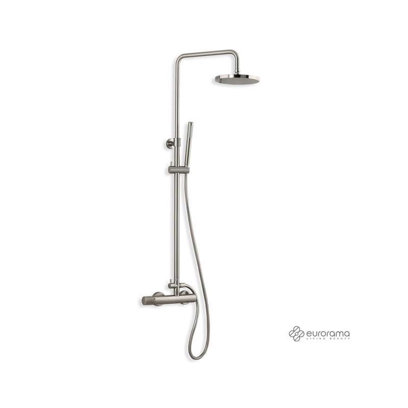 Μπαταρία ντουζιέρας θερμομικτική ELETTA TECNO 2 εξόδων με κολώνα Φ20/25 mm ρυθμιζόμενου ύψους 83-144 cm, ανακλινόμενη κεφαλή Φ20 cm &τηλέφωνο με άθραυστο σπιράλ 1.5m, EURORAMA Ιταλίας