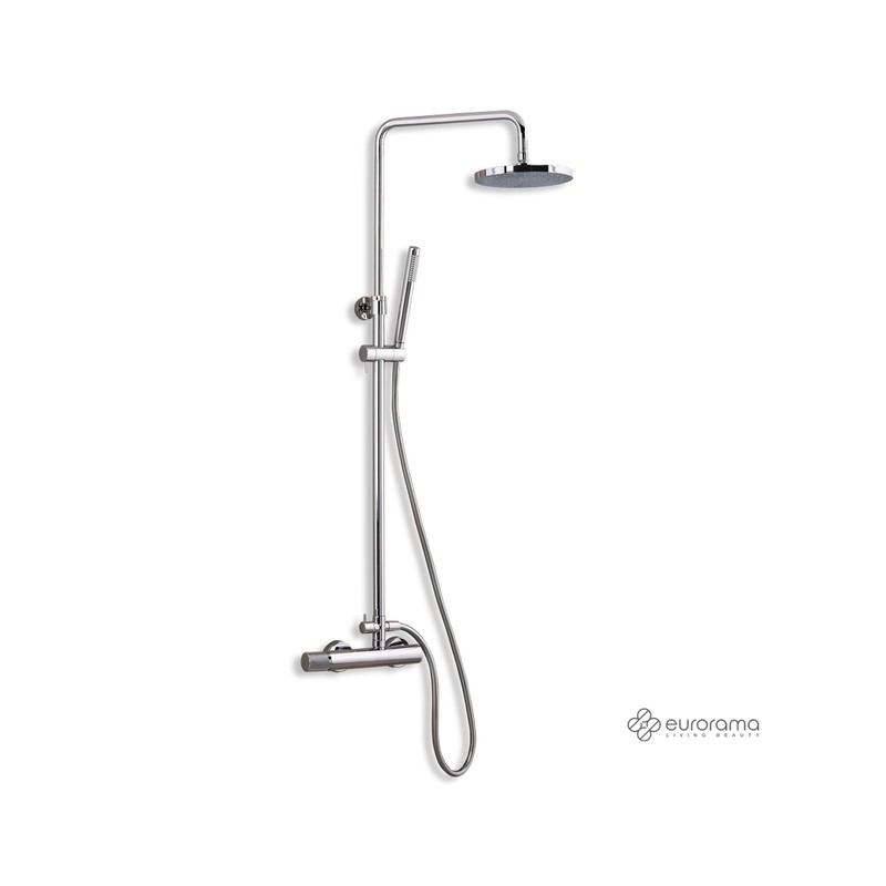 Μπαταρία ντουζιέρας θερμομικτική ELETTA TECNO 2 εξόδων με κολώνα Φ20/25 mm ρυθμιζόμενου ύψους 83-144 cm, ανακλινόμενη κεφαλή Φ20 cm &τηλέφωνο με άθραυστο σπιράλ 1.5m, EURORAMA Ιταλίας