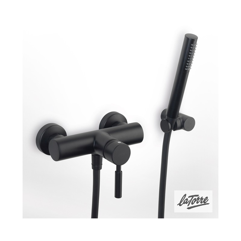 Μπαταρία ντουζιέρας θερμομικτική TECH με τηλέφωνο anticalcare, επίτοιχο στήριγμα τηλεφώνου & άθραυστο σπιράλ 1.5m, LA TORRE Ιταλίας