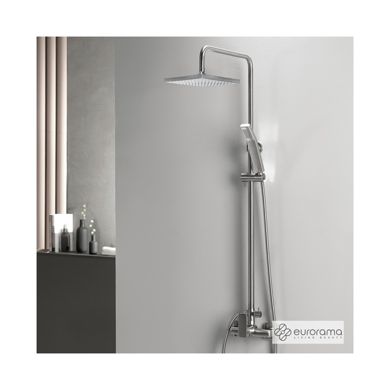 Μπαταρία ντουζιέρας θερμομικτική QUADRA 2 εξόδων με κολώνα Φ20/25 mm ρυθμιζόμενου ύψους 83-144 cm, ανακλινόμενη κεφαλή 20x20 cm & τηλέφωνο Anticalcare με άθραυστο σπιράλ 1.5m, EURORAMA Ιταλίας