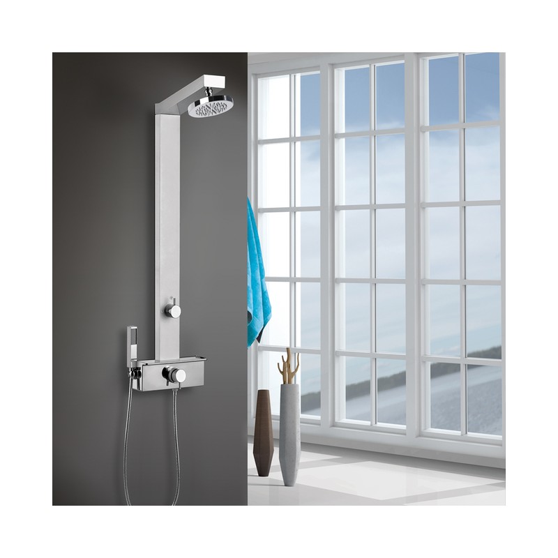 Στήλη ντους GEMMA PLUS με τηλέφωνο ντους ''anticalcare'', σπιράλ 1,50μ., σαπουνοσπογγοθήκη, ανακλινόμενη κεφαλή ντους ''anticalcare'' Φ15 εκ., θερμομικτική μπαταρία με εκτροπέα 2 εξόδων, DROP Ιταλίας